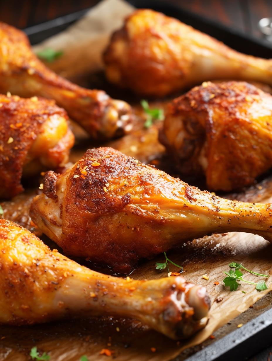 Pat the chicken drumsticks dry. This will help the spices and glaze adhere better and result in crispier skin.
