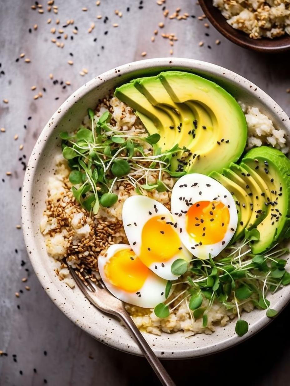 This energizing avocado egg rice bowl is quick and easy to prepare, perfect for a wholesome weekday breakfast. Prep brown rice, soft-boiled eggs, and vegetables on the weekend and simply assemble your nutritious and filling bowls on busy mornings.