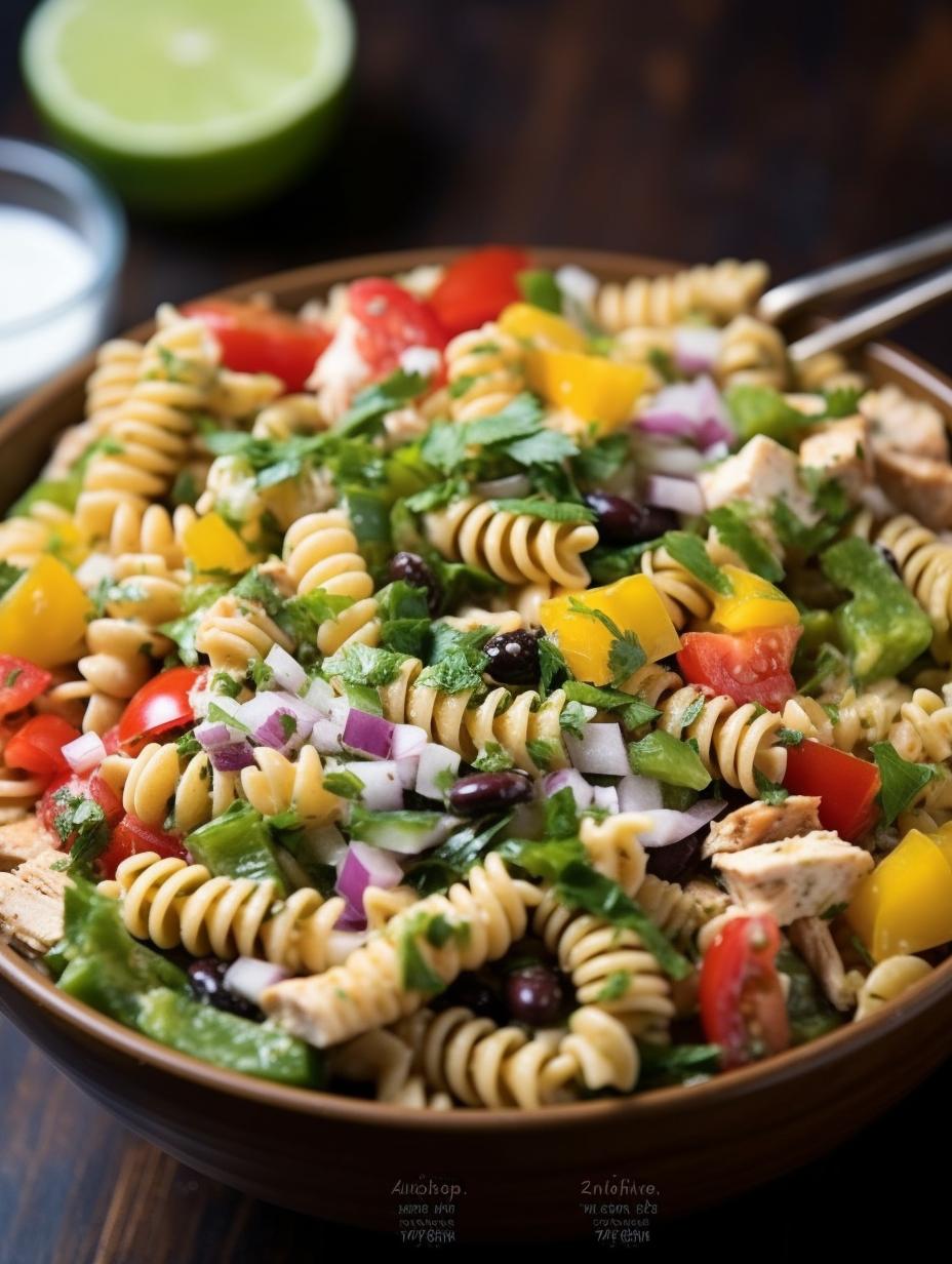 A colorful and delicious cold pasta salad, featuring fresh vegetables, grilled chicken, and a homemade smoky chipotle dressing. Perfect for a family meal or summer get-together.