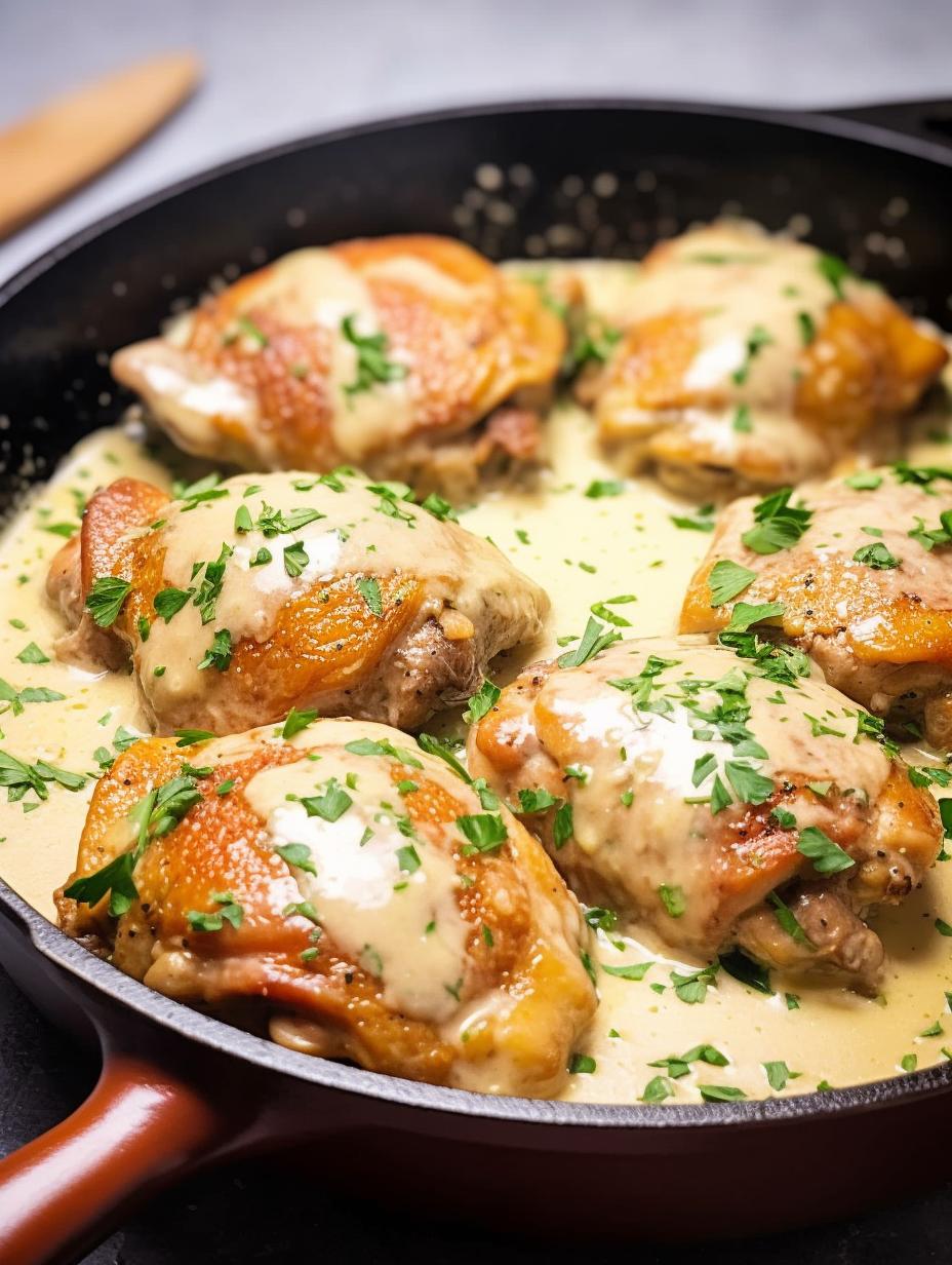 Tender chicken thighs in a decadent garlic-parmesan cream sauce — this dish is bursting with flavors! Perfect for a quick weeknight dinner that feels like a luxurious feast.