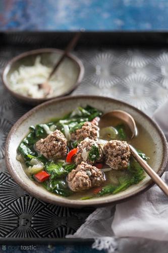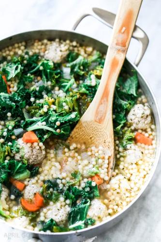 A lighter version of classic Italian Meatball Soup! This skinny wedding soup is bursting with juicy meatballs, pasta, and herbs!