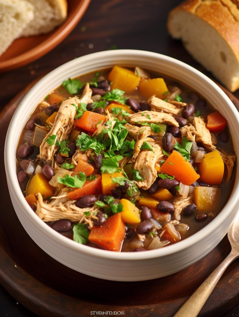 Savor a warming bowl of our Hearty Black Bean Chicken Stew infused with sweet potatoes. This dish is a crowd-pleaser, packed full of flavors and healthy ingredients. Perfect for big family get-togethers or for mesmerizing leftovers the next day, as the ingredients come together and deepen in taste.