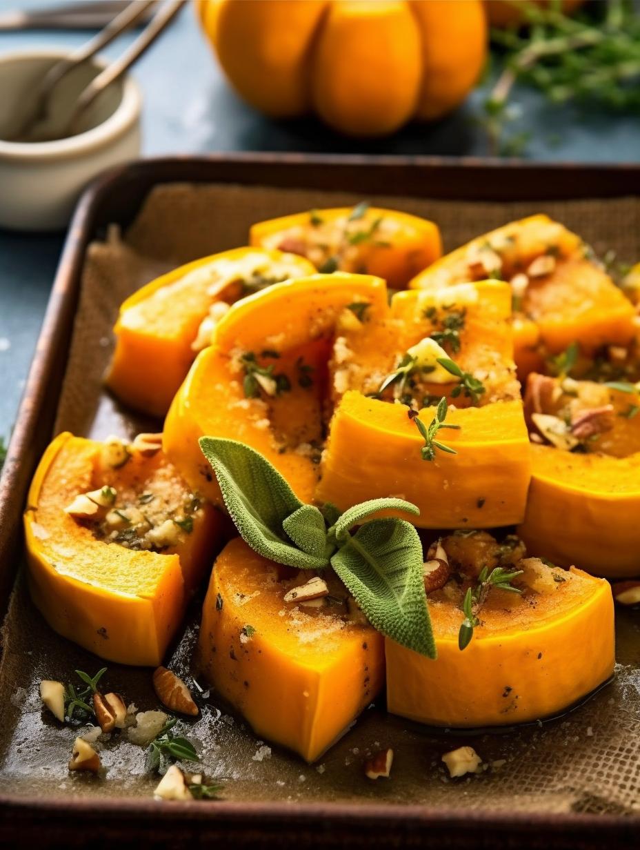 This delightful Herb-Infused Parmesan Roasted Pumpkin recipe is packed with flavorful herbs, crunchy almonds, and savory Parmesan cheese. The tender and juicy pumpkin is accentuated by the fresh parsley, sage, and thyme, making it a perfect side dish for any meal.