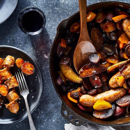 A warm and hearty one-pan dinner featuring smoked chicken sausage, baby potatoes, and crisp green beans, all roasted to perfection with a savory herb butter. A final sprinkle of fresh lemon zest elevates this simple yet satisfying meal. Easy for weeknight cooking and pleasing to the palate!