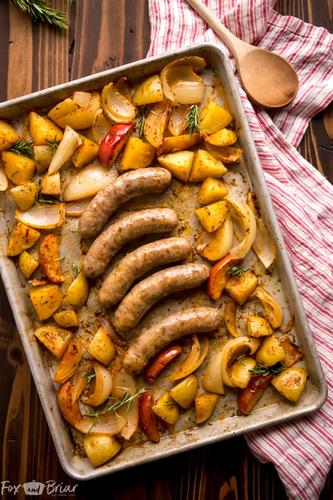 Bake for another 15 minutes, then remove the pan and using a spatula, toss and flip the sausage and veggies.