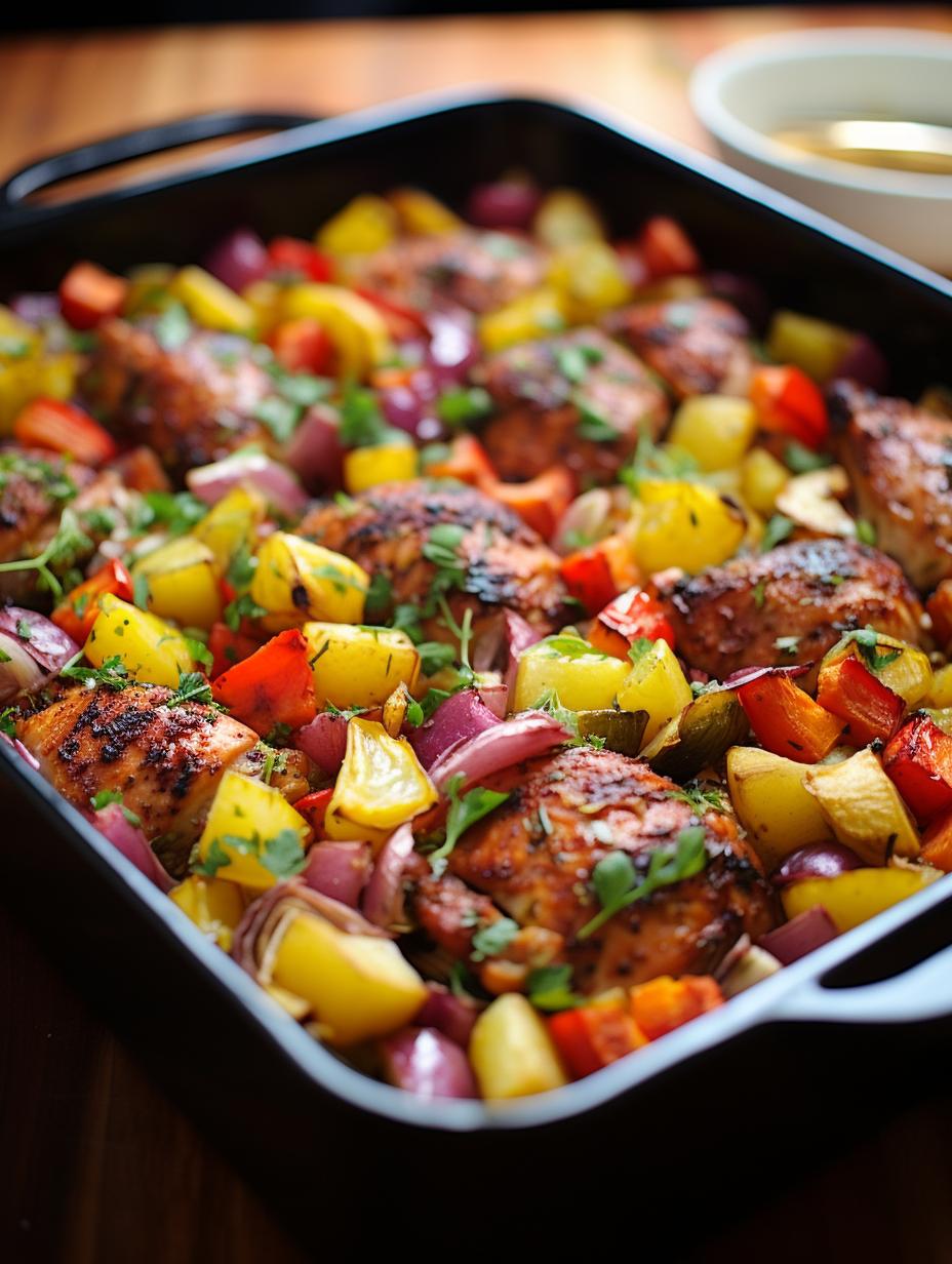 Enjoy the vibrant colors and flavors of this Honey-Glazed Pan Roasted Chicken with Rainbow Veggies, a wholesome dinner option that's not only easy to make but also a feast for your eyes. Succulent chicken breasts are marinated in a savory soy and honey sauce, then roasted together with a selection o...