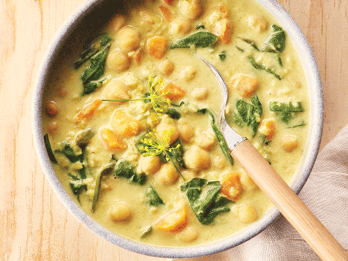 Lemony Greek Chickpea Soup with orzo and fresh vegetables in a fragrant, silky broth. This vibrant vegetarian soup, inspired by Avgolemono Soup, is protein-packed and ready in just over 30 minutes.