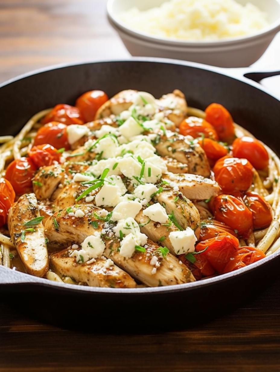 Mediterranean Feta Chicken Delight is a mouthwatering, protein-rich dinner featuring succulent chicken breast, homemade creamy tomato sauce infused with fragrant herbs, and sumptuous feta cheese. Ideal for serving with pasta, spinach, or a green salad.