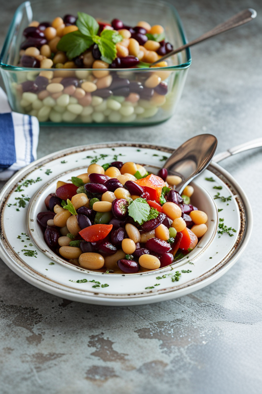 Whip up a vibrant and flavorful vegan Mediterranean Triple-Bean Salad in just a few minutes! Rich in protein, fiber, and nutrients, this refreshing and tasty salad will surely become a healthy favorite at home.