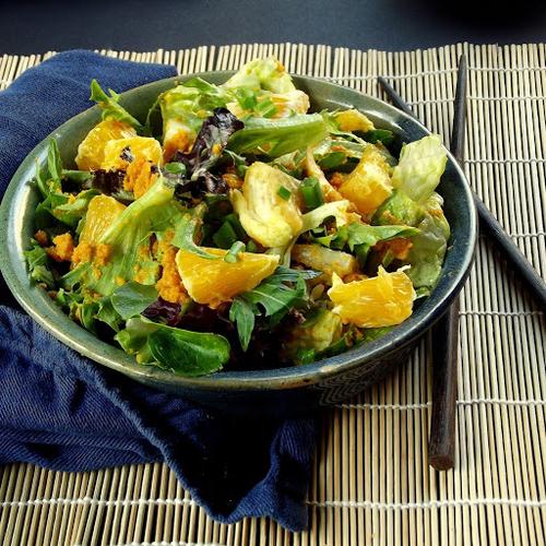 Citrusy Japanese Green Salad with Carrot Ginger Dressing
