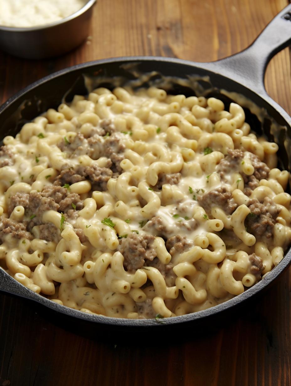 Serve the Deluxe Cheeseburger Macaroni hot with a side of crispy green salad or garlic bread.