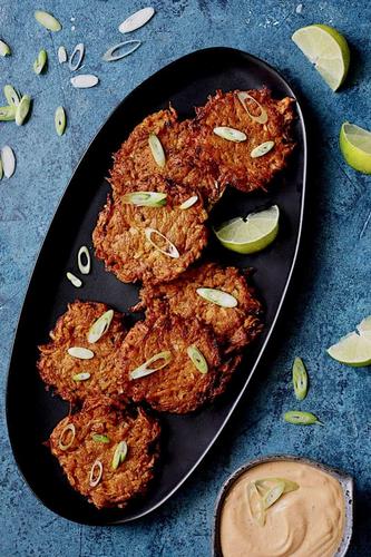 Korean Sweet Potato Latkes with Gochujang Mayonnaise