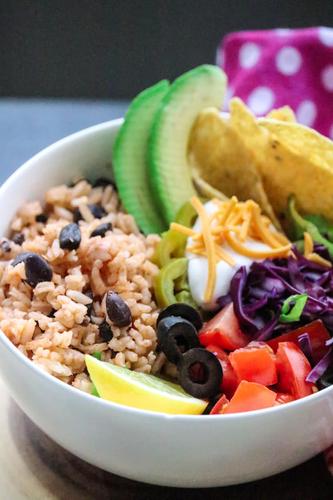 This delectable dish has perfectly seasoned fluffy rice with tender black beans, topped with a layer of melted pepper jack cheese. The addition of tomatillo salsa adds a tangy touch to an already heartwarming meal.