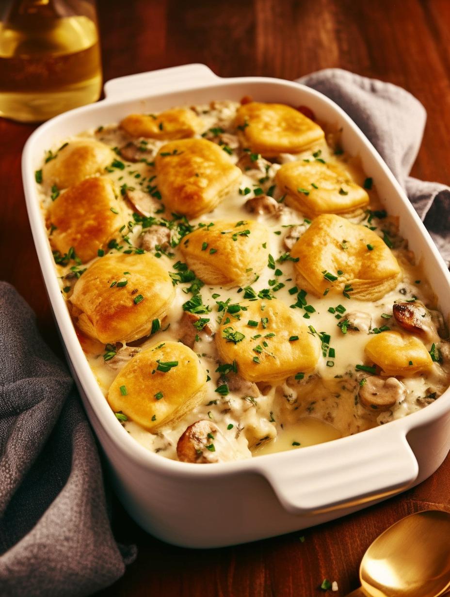 Bake for 25 minutes, or until the biscuits turn golden brown and are cooked through. Insert a toothpick into a biscuit; if it comes out clean, your casserole is ready to be enjoyed!