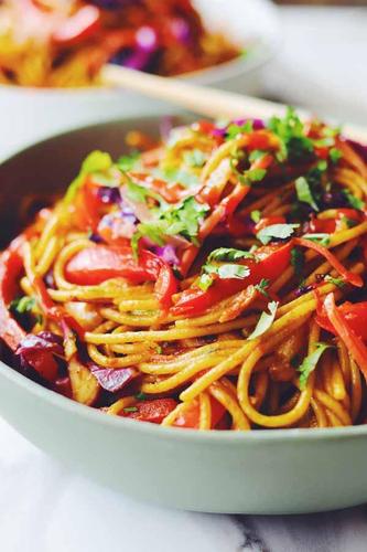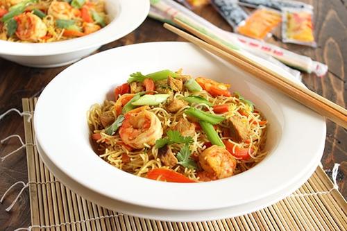 Singapore noodles are easy curried noodles with plump shrimp and chicken, great for a weeknight meal!