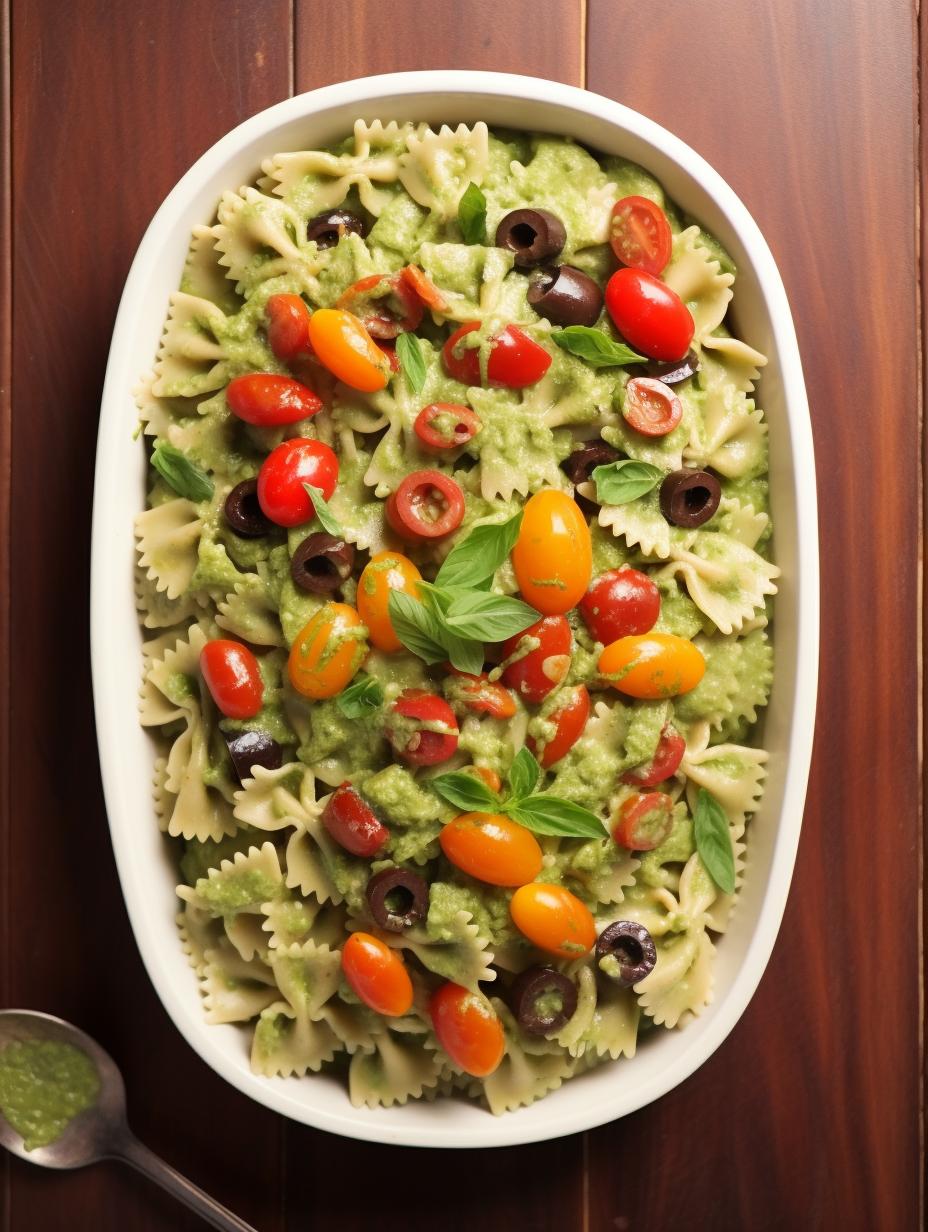 While the pasta is cooking, prepare the avocado-basil sauce. In a food processor, add the ripe avocados, fresh basil leaves, lime juice, salt, minced garlic, and olive oil. Blend until you have a consistent, creamy sauce. If necessary, scrape down the sides of the food processor a few times to ensure all ingredients are well incorporated.