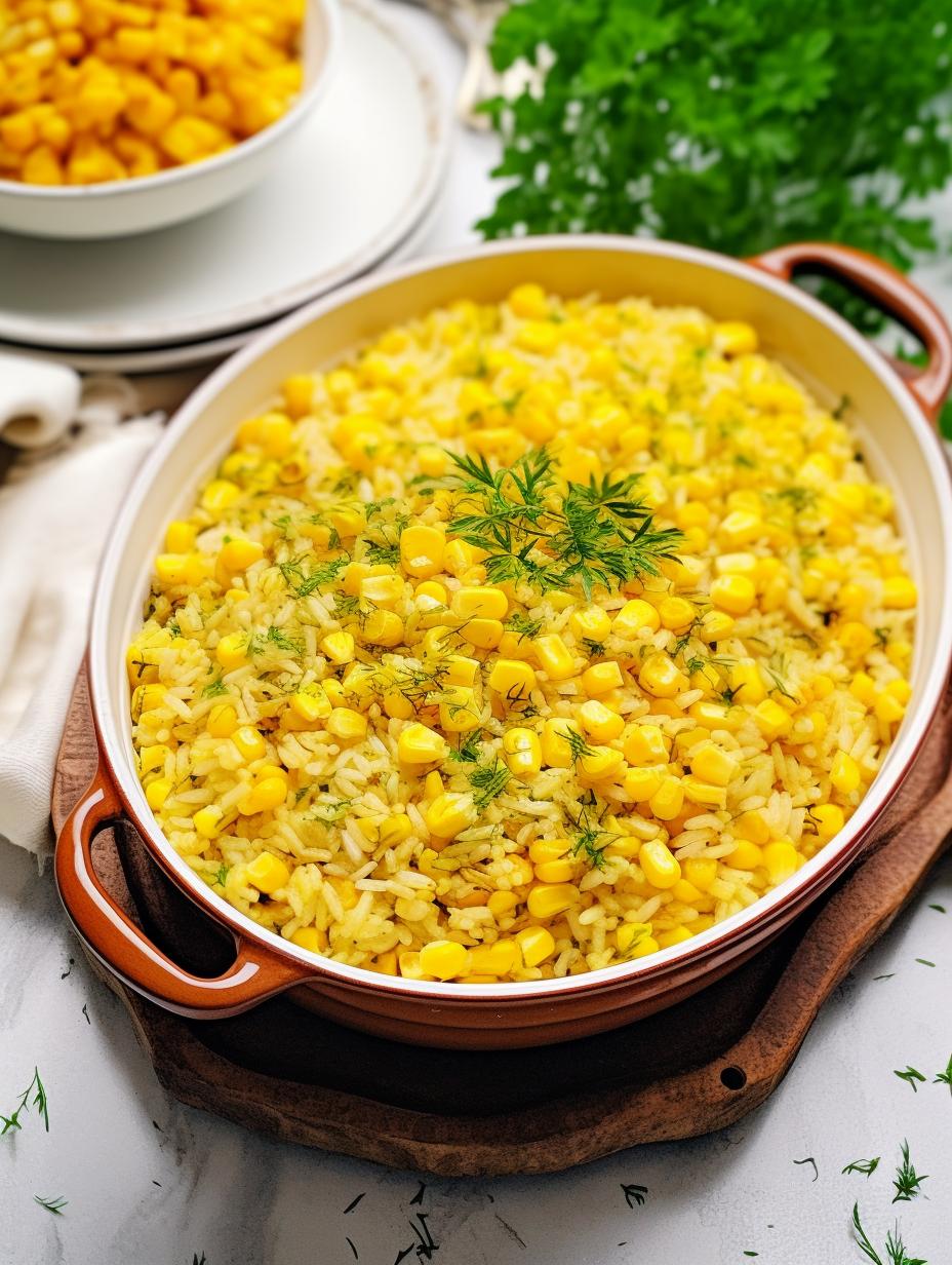 Savor the delightful balance of sweet corn and fragrant rice in Sweet Corn Fiesta Rice. This dish combines the earthy flavors of rice and vegetable broth, the sweetness of corn, and the vibrant taste of fresh parsley to create a side dish that will steal the show at your next gathering.