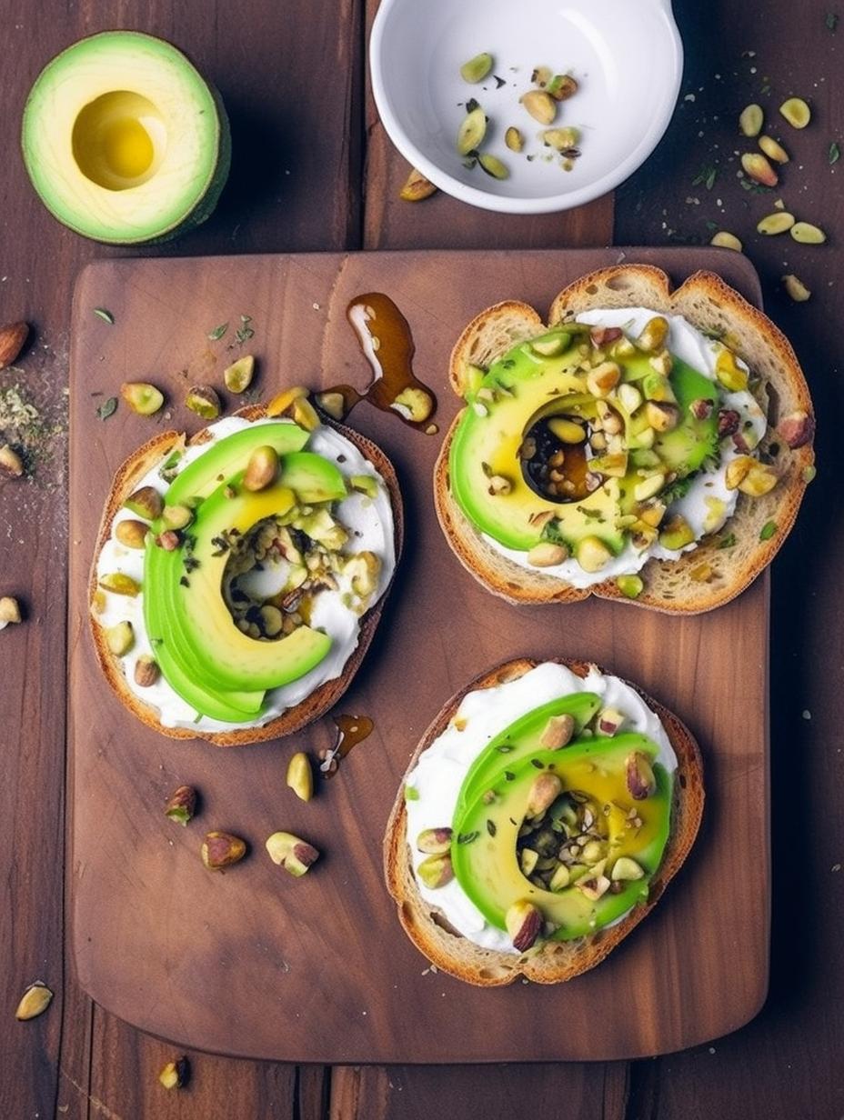 Sweet'n'Savory Pistachio & Avocado Bagel Toast