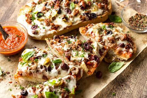 Classic French bread pizza upgraded with a heavy dose of garlicky butter, two cheeses, and fresh herbs.