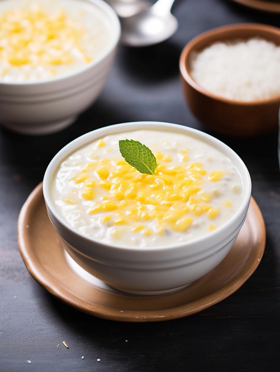 Relish the comforting blend of sweet corn kernels and glutinous rice simmered in rich, flavor-packed coconut milk. Topped with a dash of cream, this tropical Corn and Coconut Creamy Rice Pudding is a luscious treat that’s perfect for a delightful dessert or sweet snack.