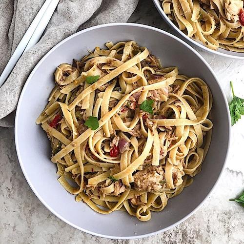 An irresistibly savory combination of tuna and anchovy creates an unforgettable pasta dish that's sure to become a family favorite.