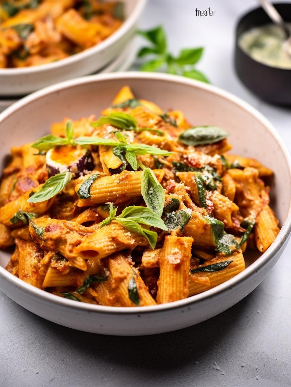 Delight in this Tuscan Sun-dried Tomato Chicken Pasta, brimming with juicy chicken pieces and refreshing veggies enveloped in a tangy sun-dried tomato pesto. Savory parmesan and fragrant basil provide the finishing touches to this satisfying and nutritious meal, ready in just 30 minutes.